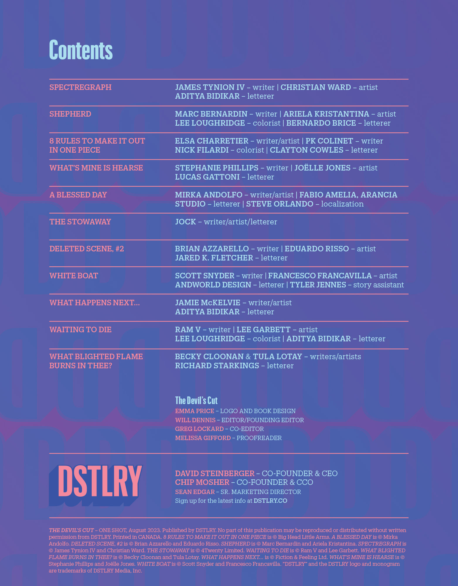 Titles include inaugural anthology, THE DEVIL'S CUT, Jock's sci-fi thriller GONE, James Tynion IV and Christian Ward's SPECTREGRAPH, and spooky festive anthology THROUGH THE BOUGHS: A YULETIDE OFFERING
