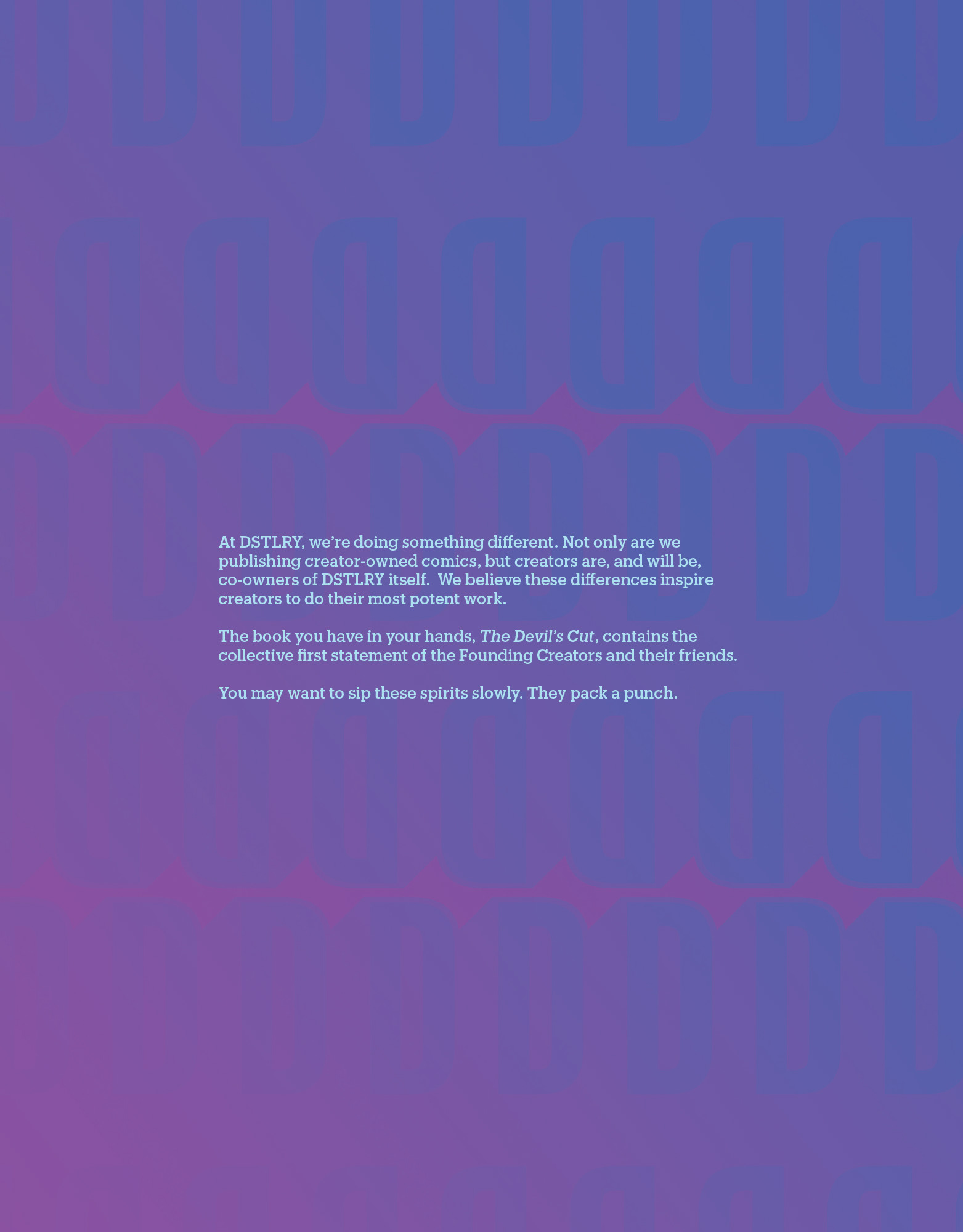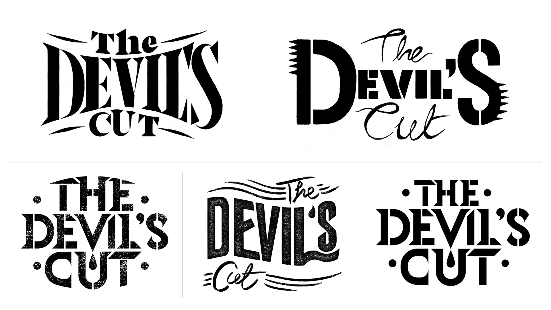 "The Devil's Cut" alludes to the most potent spirits that seep into the barrel during the process of whiskey making. We wanted to capture that branded whiskey barrel aesthetic, without losing any of the edginess of the cutting-edge stories being told. I went with some sharply pointed stencil-like letters, with a little drip of something special falling from the 'v'.